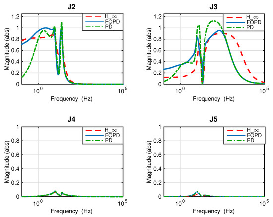 Table 9 summarizes the values of all objectives for the PD controller (20), the FOPD controller (5), and the controller [9]. The corresponding magnitude plots of the objective transfer functions are illustrated in Figure 14. Note that the practical realization of the fractional-order component of the designed FOPD controller is done by applying the Oustaloup’s approximation mentioned earlier. Model reduction is carried out by the Control Toolbox in Matlab on all the compared controllers in this study for ease of implementation.