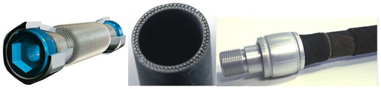 The main industrial manufacturer of pressurized artificial muscles is Festo AG & Co, Esslingen, Germany. The central element of these pneumatic muscles is a flexible tube made of an aramid fibre-reinforced rubber composite material. The elastomer is a chloroprene rubber and forms a matrix that integrates a 3D mesh of inelastic aramid fibres laid out in a diamond pattern (Figure 1) [28,29].