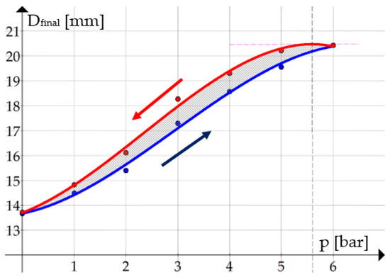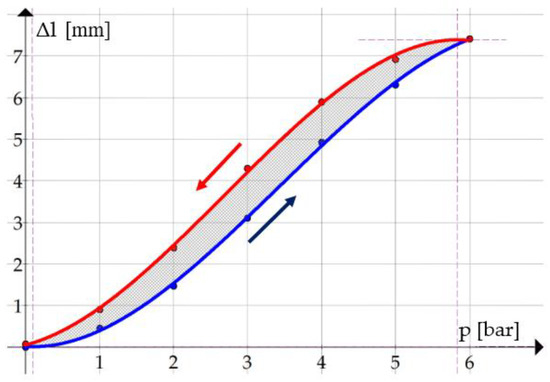 Thus, it follows that responsibility for the occurrence of hysteresis is the second previously mentioned cause. Feeding compressed air to the elastic tube strains deforms its walls, meaning that part of the work expended is converted into elastic deformation energy. This energy is responsible for the tube reverting to its (approximate) initial form and dimensions once the load disappears. Another part of the work is converted into heat and this loss of energy determines the occurrence of the hysteresis phenomenon.