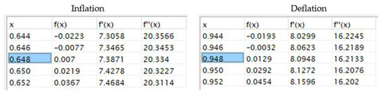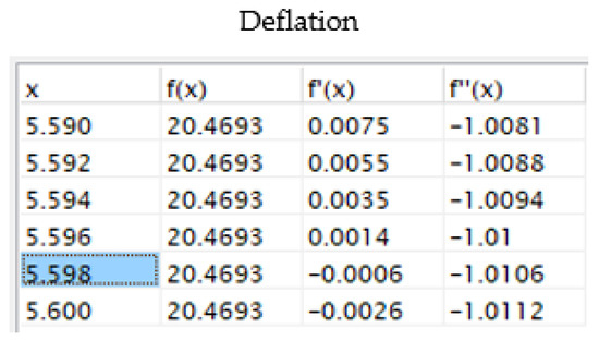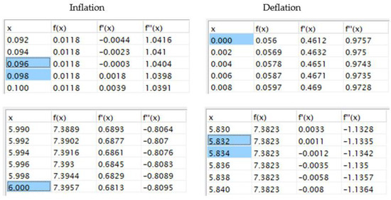For the rest of the working pressure (<5.597 bar) the slope of the tangent to the curve is different from zero, as shown by the data in Figure 6 (the first order derivative of the function is different from zero).