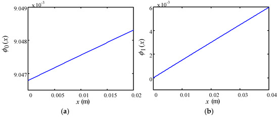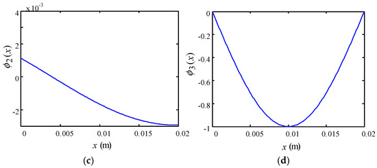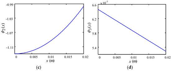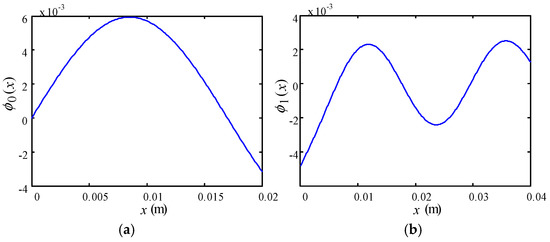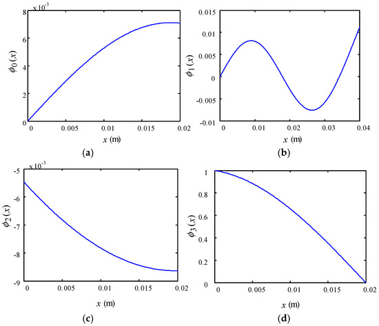 Then, substitute Equations (13)–(19) into the mode functions, respectively, to solve the natural frequency of each order of the system and the component mode coefficients.