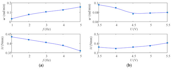 To investigate the effect of driving signal parameters on speed and torque, more experiments were conducted. The change relationship curve of the speed and torque with different drive parameters was drawn, as shown in Figure 19.