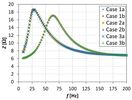 For the purpose of the present paper, the SJA configurations are referred to as cases 1a, 2a, 3a, 1b, 2b and 3b. The designation includes the type of the enclosure and the model of the loudspeaker used for the given actuator, e.g., case 1b means that the SJA uses the first enclosure (case 1, Figure 1a) and the loudspeaker “b” (STX M.18.200.8.MCX, Table 1).