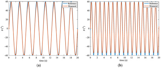 To verify the performance of the proposed method, two kinds of reference trajectory were selected, i.e., the sinusoidal signal and actual knee motion signal. The sinusoidal signal is shown in (16).