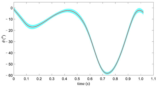 To verify the capacity of tracking the actual knee motion under the proposed controller, the knee motion provides another reference trajectory, which was obtained from the Anybody Modeling System (Anybody, The Netherlands) with the standard model of 1.8 m in height. The result with standard deviations (shade areas) is shown in Figure 9. The exoskeleton with the EPSMC can accurately track the actual knee motion of a human.