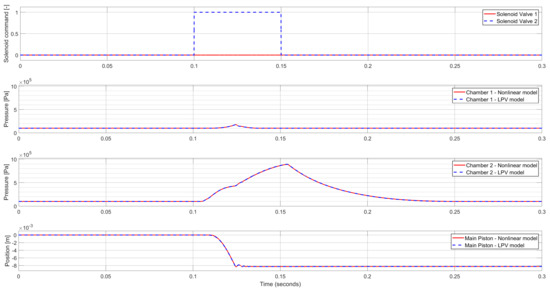 As (7) shows, the state matrix includes the main piston’s velocity and the chamber volumes, while due to the simplification regarding the floating piston, and depend on the main piston’s position, hence they must be included in the scheduling vector. On the other hand, in B the temperatures and are also scheduling parameters.