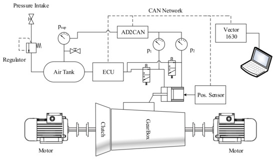 - Szimandl, B.; Németh, H. Robust servo control design for an electro-pneumatic clutch system using the H∞; method. In Proceedings of the 2014 IEEE/ASME 10th International Conference on Mechatronic and Embedded Systems and Applications (MESA), Senigallia, Italy, 10–12 September 2014; pp. 1–6. [Google Scholar] [CrossRef]