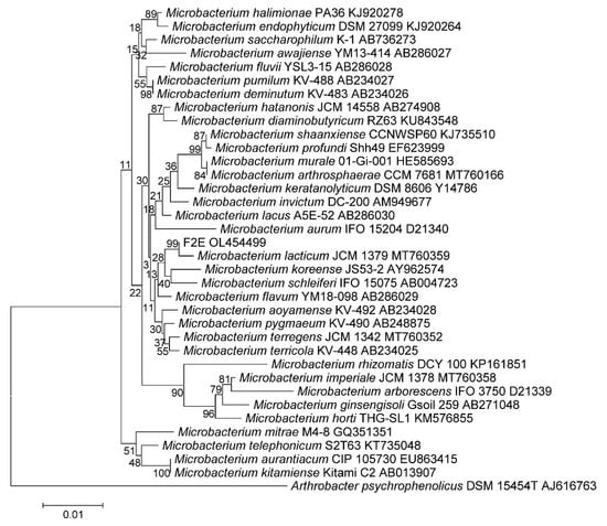 The 16S rRNA gene of Microbacterium sp. F2E has been deposited in the NCBI GenBank database under the number OL454499.