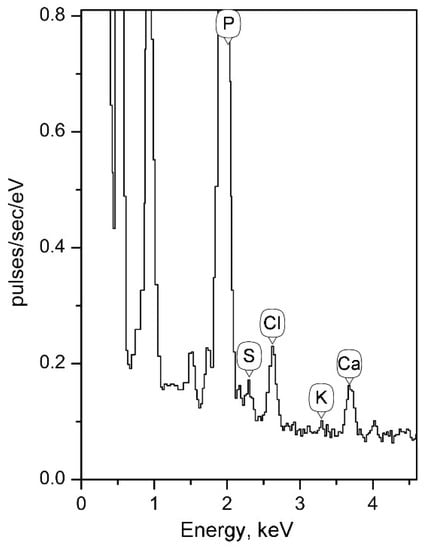 3.5. X-ray Microanalysis Investigation of the Globular Structures