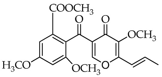 - De Stefano, S.; Nicoletti, R.; Milone, A.; Zambardino, S. 3-O-Methylfunicone, a fungitoxic metabolite produced by the fungus Penicillium pinophilum. Phytochemistry 1999, 52, 1399–1401. [Google Scholar] [CrossRef]