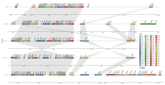 The plasmidome of the typical strain J223 presents genes associated with the type II toxin–antitoxin system. RelE/ParE toxin–antitoxin system family is present in pASal1, pASal3, and pASal5 (File S2). The RelB/DinJ and the VapC family toxin–antitoxin systems are present in pASal1, and pASal5, respectively (File S2). Conversely, atypical strains do not present toxin–antitoxin systems in their plasmid but have them incorporated into the chromosome instead.