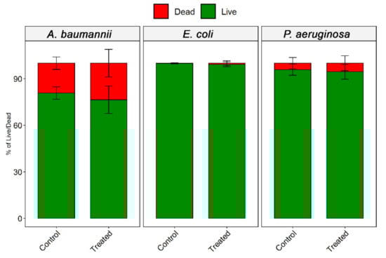 - Patil, S.; Valdramidis, V.P.; Karatzas, K.A.G.; Cullen, P.J.; Bourke, P. Assessing the microbial oxidative stress mechanism of ozone treatment through the responses of Escherichia coli mutants. J. Appl. Microbiol. 2011, 111, 136–144. [Google Scholar] [CrossRef]