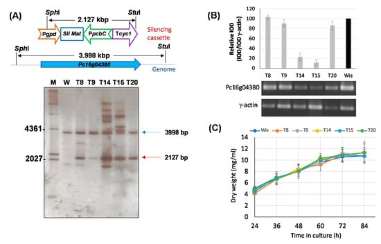 3.2. Knocking-Down of the P. chrysogenum Pc16g04380 Gene Is Compatible with a Viable Phenotype