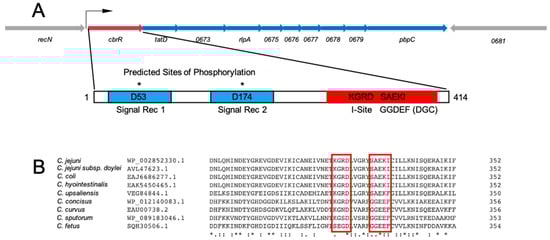 3.1. C. jejuni CbrR Is Annotated as a DGC Similar to C. crescentus PleD
