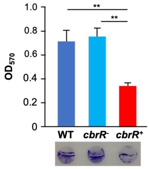 3.6. CbrR Negatively Regulates Biofilm Formation