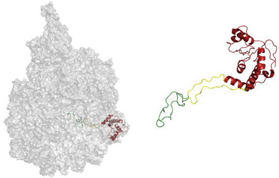Other authors have also viewed the ribosome as a fossil record [54]. These authors also discussed the structures of the ribosomal proteins as being less structured the deeper the proteins go into the center of the ribosome. Moreover, the parts of the domains that are more exposed to solvent tend to present a more globular structure. There is an RNA function to chaperone proteins to fold. The Lupas laboratory made an important discovery by creating a soluble protein from the disordered helical ribosomal domain RPS20 [55].
