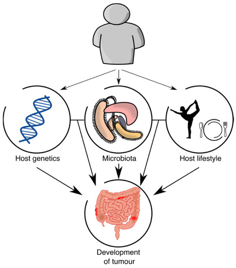 As we have reviewed, there are biological mechanisms that are involved in both genetic CRC risk and microbiota composition, but not all the role of microbiota in CRC is influenced by the genetics of the host. It must pointed out that the composition of the microbiota is influenced by diet [] or lifestyle []. Therefore, the host could shape the composition of the microbiota by modifiable risk factors rather than genetic factors and that could partially explain that there are shared and independent risk factors. For example, the metabolism of cholesterol is one consistent pathway altered, an alteration that could partially be due to the host genetic component and another part of the diet. In addition, bacteria can shape the function of the host cell, by changing the expression and methylation patterns of key genes in CRC development.
