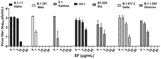 EF extract fully inhibited infectivity of all investigated variants of concerns (VOCs) at concentrations ≥ 25 µg/mL.