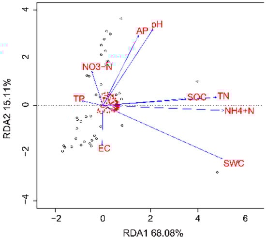 | Name | AP (mg kg−1) | EC (mS cm−1) | pH | SOC (g kg−1) | TN (g kg−1) | TP (g kg−1) | NO3−-N (mg kg−1) | NH4+-N (mg kg−1) | SWC (%) |