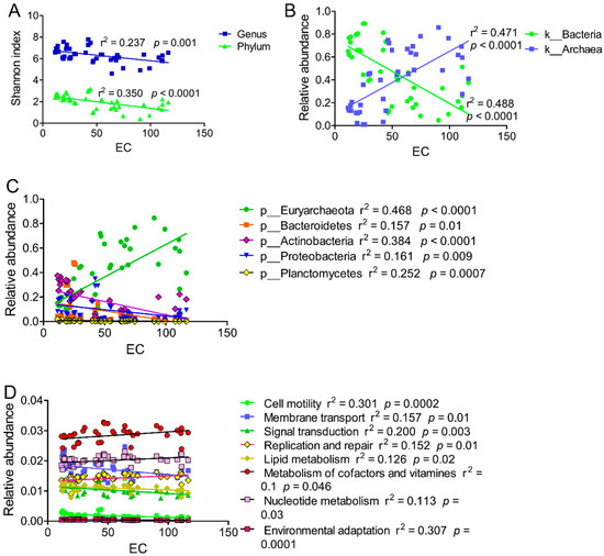 - Zhang, G.L.; Bai, J.H.; Tebbe, C.C.; Zhao, Q.Q.; Jia, J.; Wang, W.; Wang, X.; Yu, L. Salinity controls soil microbial community structure and function in coastal estuarine wetlands. Environ. Microbiol. 2021, 23, 1020–1037. [Google Scholar] [CrossRef]