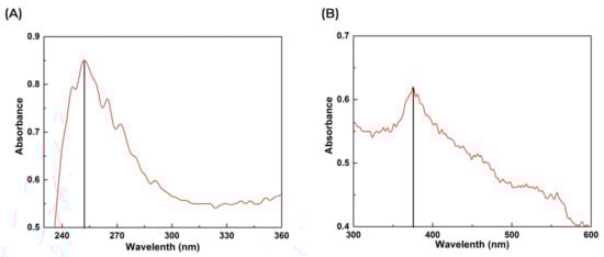 Figure 1. Ultraviolet–visible spectral analysis of synthesized ZnO (A) and green synthesized ZnO NPs (B).