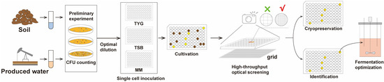 Schematic workflow of high-throughput single-cell-based cultivation and functional characterization of biosurfactant-producing bacteria.