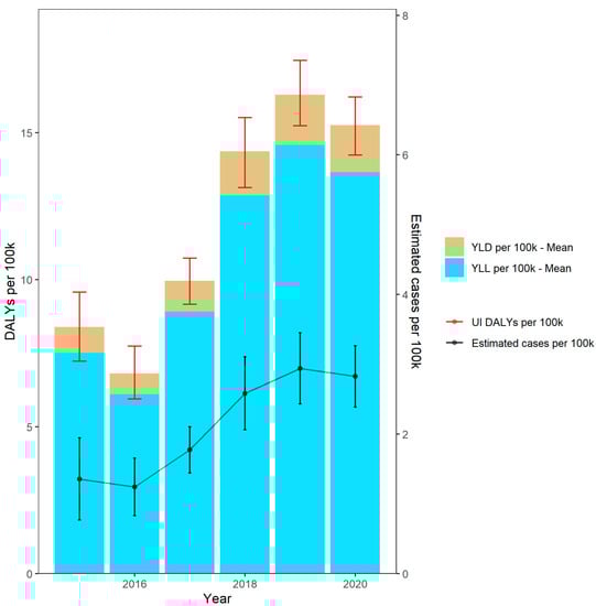 - von der Lippe, E.; Devleesschauwer, B.; Gourley, M.; Haagsma, J.; Hilderink, H.; Porst, M.; Wengler, A.; Wyper, G.; Grant, I. Reflections on key methodological decisions in national burden of disease assessments. Arch. Public Health 2020, 78, 137. [Google Scholar] [CrossRef] [PubMed]