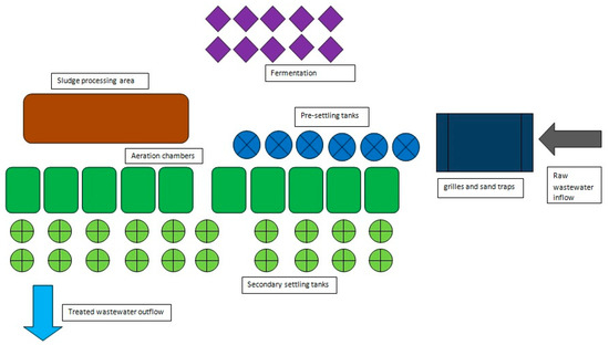 The schematic of the wastewater-treatment plant used as a source of the wastewater samples in the study.