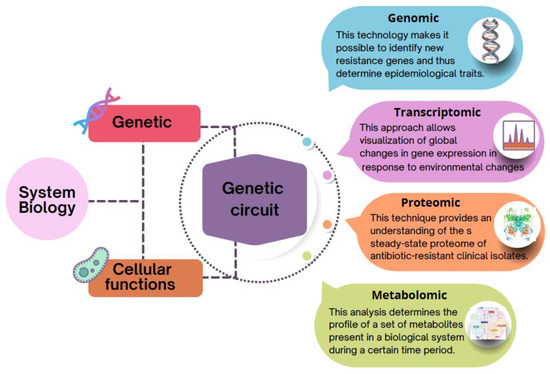 Overall, AR is a complex process involving different levels, and therefore, an approach involving the development of a comprehensive and predictive understanding of both the mode of action of antibiotics and the physiology of antimicrobial stress is needed, which can be achieved through systems biology, by employing a synergistic integration of omics at the multilevel, providing the framework for contextualizing the genetic and metabolic changes involved to antibiotic resistance-related events.