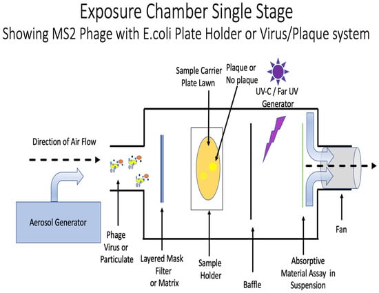Testing and exposure chamber designed with MS2 phage and other viroids.