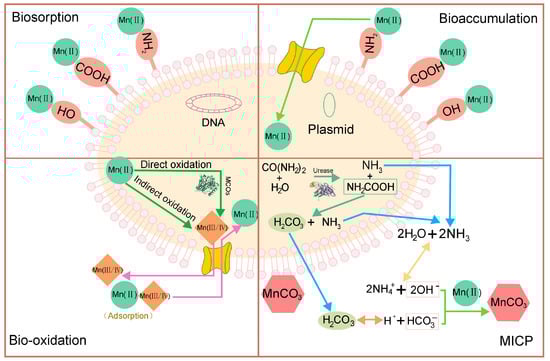 - Hatayama, K. Mn Carbonate precipitation induced by calcite-forming bacteria. Geomicrobiol. J. 2020, 37, 603–609. [Google Scholar] [CrossRef]