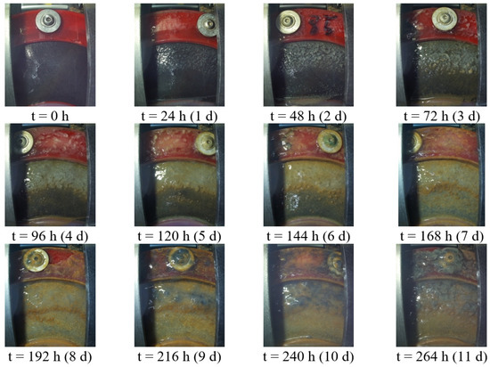 Figure 3 shows the biofilm growth during 11 days in an MFC without anti-fouling strategy, taken by the Raspberry Pi camera.