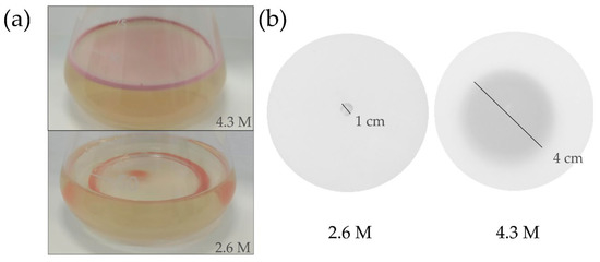 Buoyancy and motility phenotypes were observed in salt-stressed cultures. The optimum growth condition is 4.3 M NaCl and low salt is 2.6 M NaCl. (a) Fluctuation of cells in optimal salinity and sinking of cells in hyposalinity. (b) A motility assay showed less motility of cells in hyposalinity.