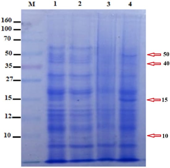 - Laemmli, U.K. Cleavage of structural proteins during the assembly of the head of bacteriophage T4. Nature 1970, 227, 680–685. [Google Scholar] [CrossRef] [PubMed]