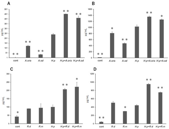 - Figueiredo, C.A.; Marques, C.R.; dos Santos Costa, R.; da Silva, H.B.; Alcantara-Neves, N.M. Cytokines, cytokine gene polymorphisms and Helicobacter pylori infection: Friend or foe? World J. Gastroenterol. 2014, 20, 5235–5243. [Google Scholar] [CrossRef]