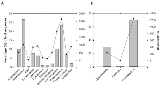 - DeSantis, T.Z.; Hugenholtz, P.; Larsen, N.; Rojas, M.; Brodie, E.L.; Keller, K.; Huber, T.; Dalevi, D.; Hu, P.; Andersen, G.L. Greengenes, a chimera-checked 16S rRNA gene database and workbench compatible with ARB. Appl. Environ. Microbiol. 2006, 72, 5069–5072. [Google Scholar] [CrossRef]