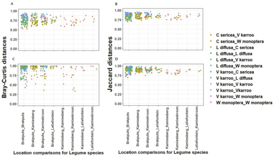 - Lemaire, B.; Dlodlo, O.; Chimphango, S.; Stirton, C.; Schrire, B.; Boatwright, S.; Honnay, O.; Smets, E.; Sprent, J.; James, E.; et al. Symbiotic diversity, specificity and distribution of rhizobia in native legumes of the Core Cape Subregion (South Africa). FEMS Microbiol. Ecol. 2015, 91, 2–17. [Google Scholar] [CrossRef]