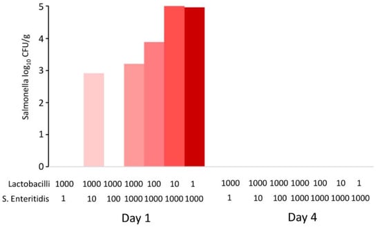 Chicago/Turabian StyleJuricova, Helena, Jitka Matiasovicova, Marcela Faldynova, Alena Sebkova, Tereza Kubasova, Hana Prikrylova, Daniela Karasova, Magdalena Crhanova, Hana Havlickova, and Ivan Rychlik. 2022. "Probiotic Lactobacilli Do Not Protect Chickens against Salmonella Enteritidis Infection by Competitive Exclusion in the Intestinal Tract but in Feed, Outside the Chicken Host" Microorganisms 10, no. 2: 219. https://doi.org/10.3390/microorganisms10020219