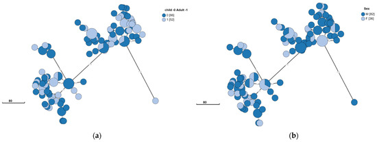- Zhou, Z.; Alikhan, N.-F.; Sergeant, M.J.; Luhmann, N.; Vaz, C.; Francisco, A.P.; Carriço, J.A.; Achtman, M. GrapeTree: Visualization of Core Genomic Relationships among 100,000 Bacterial Pathogens. Genome Res. 2018, 28, 1395–1404. [Google Scholar] [CrossRef] [PubMed] [Green Version]