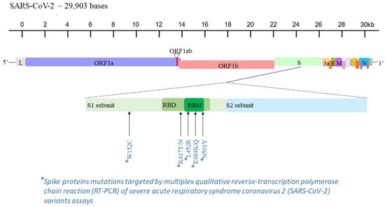 - Blairon, L.; Cupaiolo, R.; Piteüs, S.; Beukinga, I.; Tré-Hardy, M. The challenge of screening SARS-CoV-2 variants of concern with RT-qPCR: One variant can hide another. J. Virol. Methods 2021, 297, 114248. [Google Scholar] [CrossRef] [PubMed]