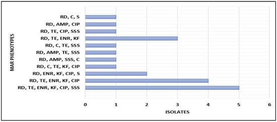- Sonola, V.S.; Katakweba, A.S.; Misinzo, G.; Matee, M.I.N. Occurrence of Multi-Drug-Resistant Escherichia coli in Chickens, Humans, Rodents and Household Soil in Karatu, Northern Tanzania. Antibiotics 2021, 10, 1137. [Google Scholar] [CrossRef] [PubMed]