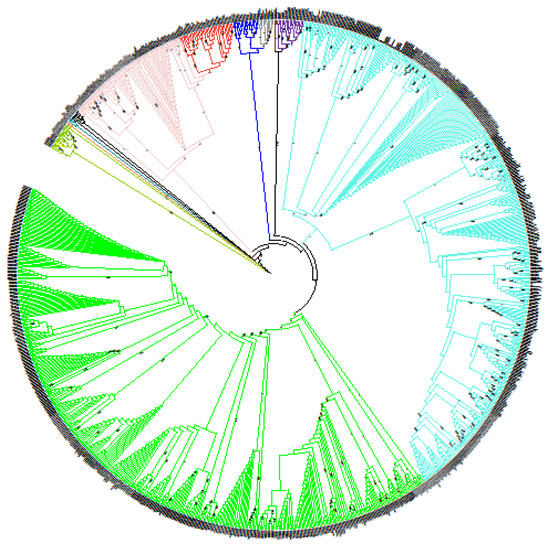 - Wattam, A.R.; Abraham, D.; Dalay, O.; Disz, T.L.; Driscoll, T.; Gabbard, J.L.; Gillespie, J.J.; Gough, R.; Hix, D.; Kenyon, R.; et al. PATRIC, the bacterial bioinformatics database and analysis resource. Nucleic Acids Res. 2014, 42, D581–D591. [Google Scholar] [CrossRef] [Green Version]