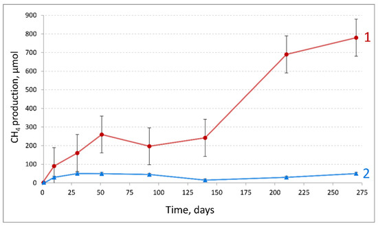 Anaerobic production of methane from oil was originally reported by S.I. Kuznetsov [4]. A wide range of works is devoted to the study of the composition of methanogenic syntrophic associations degrading oil [5,6,7,8,9,10]. The participation of bacteria of the Syntrophaceae family in the syntrophic degradation of alkanes together with methanogens has been shown [11,12,13,14,15]. Although the composition of the associations differed depending on the composition of the oil, the temperature and salinity of the habitat from which they were isolated, the main functional components were oil-degrading Deltaproteobacteria or/and Firmicutes and hydrogenotrophic and acetoclastic methanogens [16,17,18]. Using metagenomic analysis in syntrophic oil-degrading communities, in addition to the known species, new uncultured bacteria such as ‘Atribacteria’ or archaea ‘Candidatus Methanoliparia’, ‘Candidatus Argoarchaeum’, and ‘Candidatus Syntrophoarchaeum’ were revealed [19,20,21]. Moreover, recently non-syntrophic hydrocarbon degradation by the methanogenic archaeon ‘Candidatus Methanoliparum’ was shown, which essentially changes our view on anaerobic oil transformation in petroleum reservoirs [22].
