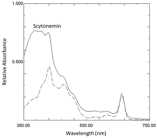 - Matsui, K.; Nazifi, E.; Hirai, Y.; Wada, N.; Matsugo, S.; Sakamoto, T. The cyanobacterial UV-absorbing pigment scytonemin displays radical-scavenging activity. J. Gen. Appl. Microbiol. 2012, 58, 137–144. [Google Scholar] [CrossRef] [PubMed] [Green Version]
