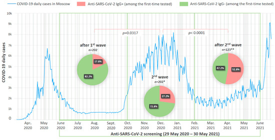 3.3. Anti-SARS-CoV-2 Prevalence Rates at Initial Screening Conducted at Different Stages of COVID-19 Pandemic