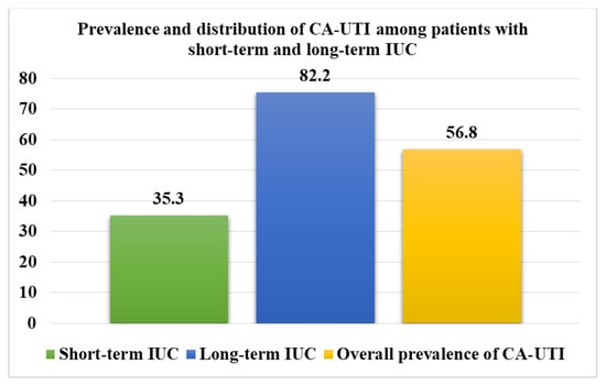 Prevalence of catheter-associated urinary tract infection (CA-UTI) among participants with short-term and long-term IUC.