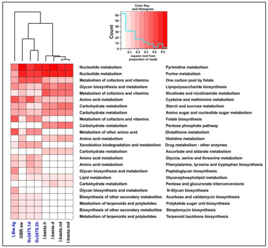 60. Aramaki, T.; Blanc-Mathieu, R.; Endo, H.; Ohkubo, K.; Kanehisa, M.; Goto, S.; Ogata, H. KofamKOALA: KEGG Ortholog assignment based on profile HMM and adaptive score threshold. Bioinformatics 2020, 36, 2251–2252. [Google Scholar] [CrossRef] [PubMed]