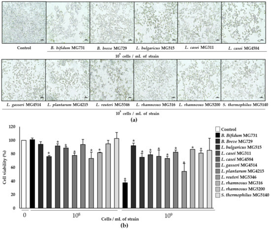 - Song, M.W.; Jang, H.J.; Kim, K.T.; Paik, H.D. Probiotic and antioxidant properties of novel Lactobacillus brevis KCCM 12203P isolated from kimchi and evaluation of immune-stimulating activities of its heat-killed cells in raw 264.7 cells. J. Microbiol. Biotechnol. 2019, 29, 1894–1903. [Google Scholar] [CrossRef] [PubMed]