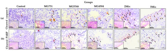 - Bressenot, A.; Marchal, S.; Bezdetnaya, L.; Garrier, J.; Guillemin, F.; Plenat, F. Assessment of apoptosis by immunohistochemistry to active caspase-3, active caspase-7, or cleaved PARP in monolayer cells and spheroid and subcutaneous xenografts of human carcinoma. J. Histochem. Cytochem. 2009, 57, 289–300. [Google Scholar] [CrossRef]