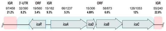 3.1. The SNPs Occurrence Rate Is Low in the Regulatory IGRs of the icaADBCR Locus